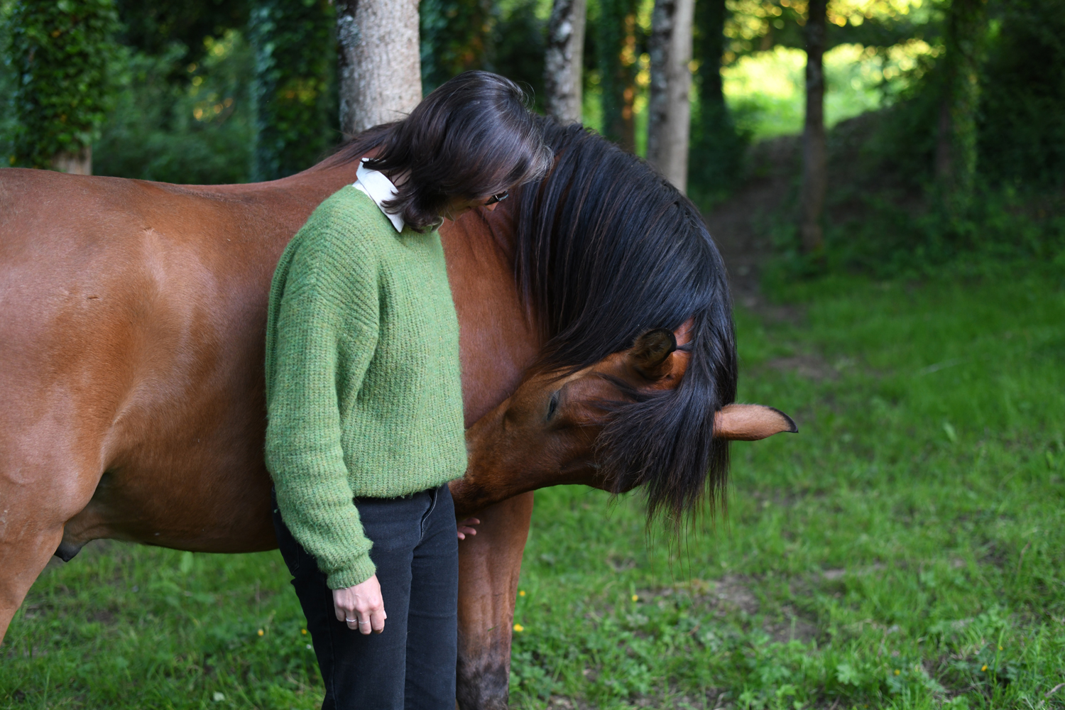 Mon rêve était d’avoir mes chevaux à la maison. Il est enfin exaucé dans ce lieu qui est un petit paradis verdoyant.
